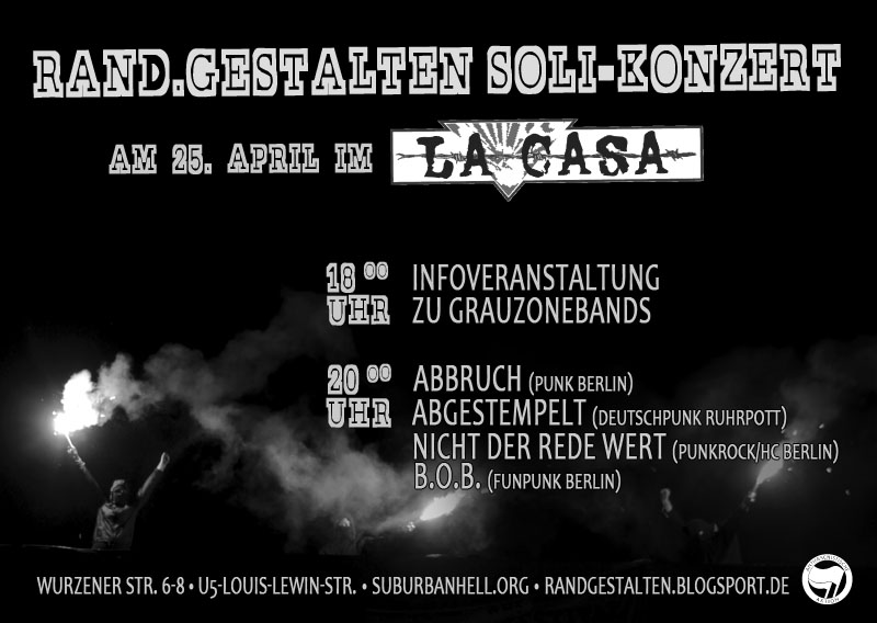 Für das „Rand.Gestalten“ 2014 wird noch Geld benötigt, darum laden wir euch ein zu einem feinen Konzert mit:![]()